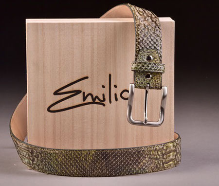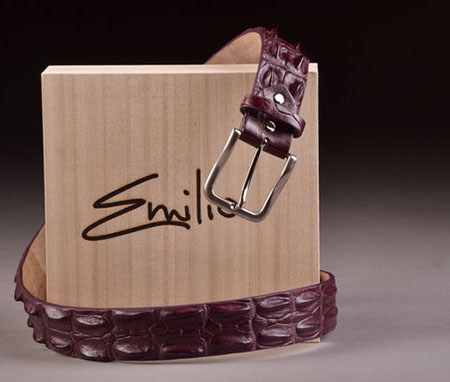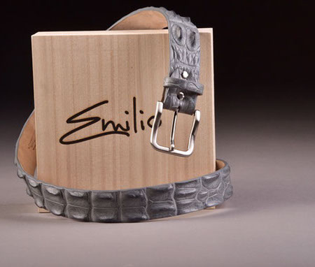 Plantaardig gelooid leer, chroom gelooid leer, krokodil, struisvogel, Phyton, de keuze is bijna oneindig. Deze riem word met de hand gestikt, hiervoor zijn ongeveer 1000 steken nodig.